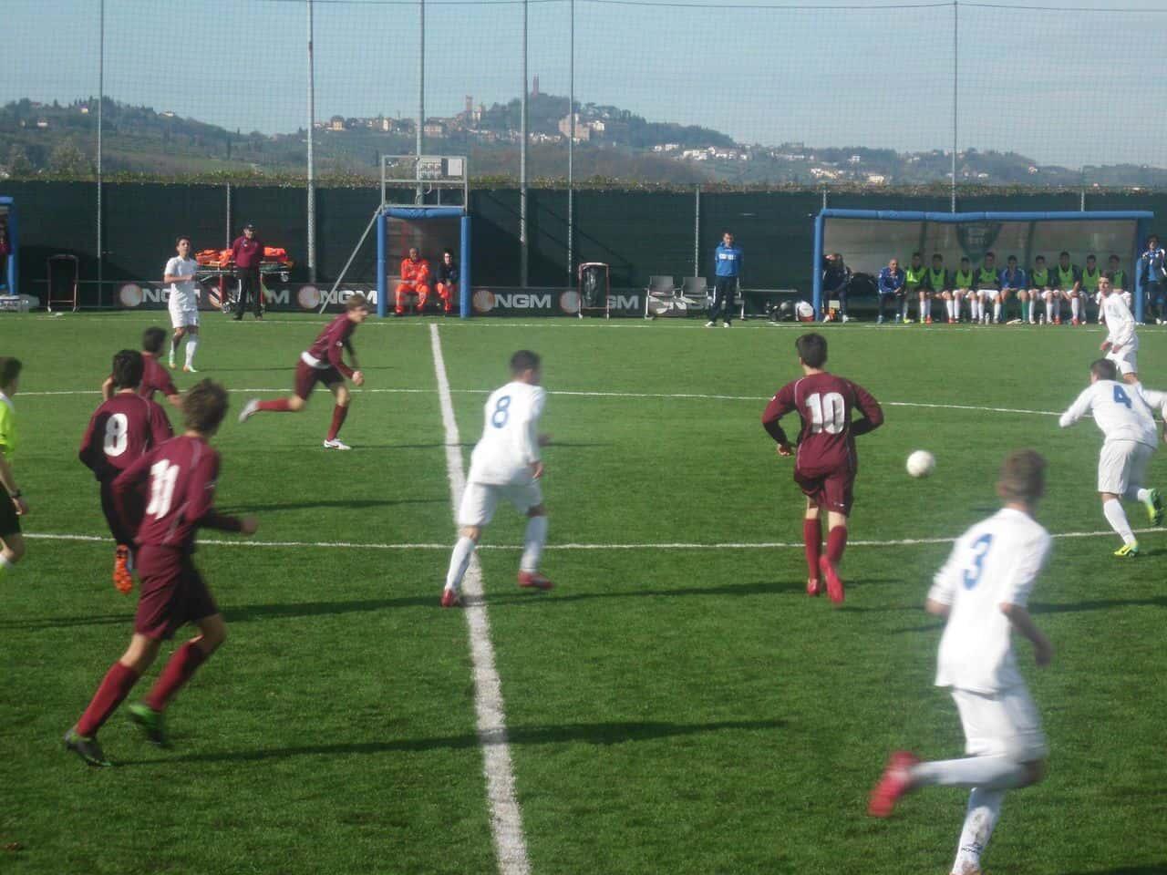ma sono degli azzurri le azioni più pericolose. Il Città di Pontedera può recriminare per un calcio di rigore apparso solare non concesso ma nel complesso della manovra gli amaranto sono apparsi abbastanza impalpabili anche se ben messi in campo e dotati di qualche buona individualità. L’Empoli sta vincendo grazie sopratutto alla capacità di trobvare migliori soluzioni offensive ed in virtà dio un tasso tecnico superiore. Qualche errore di troppo da parte dgli azzurrini nel controllo palla e nelle linee della manovra.