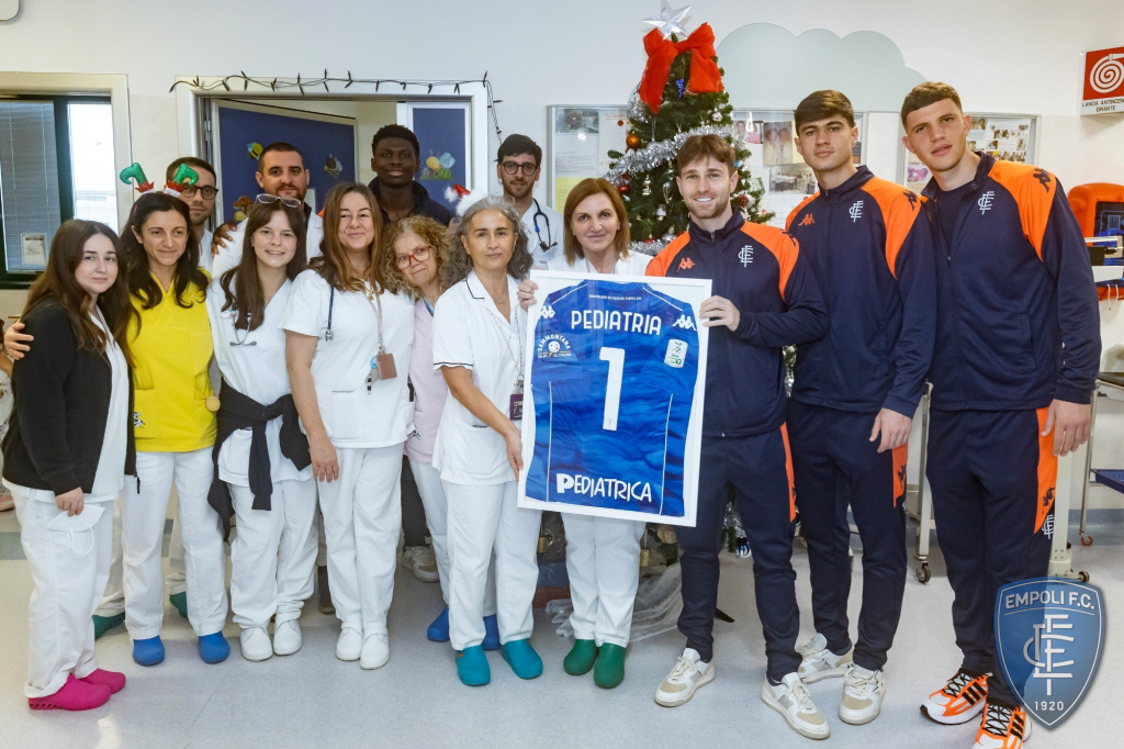 La visita è iniziata dal reparto di Pediatria, dove i calciatori hanno incontrato i piccoli pazienti ricoverati, donando panettoni e regali a tinte azzurre e trascorrendo con loro alcuni momenti di serenità, tra foto e strette di mano. Al reparto è stata inoltre consegnata una maglia ufficiale dell’Empoli FC personalizzata.