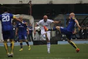 18′- Pericoloso il Verona con in colpo di testa di Cacia che esce di un niente. Cross di Hallfredsson.