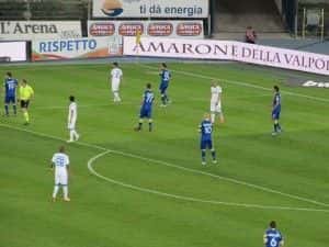 37′ – Fallo di Moro ai venticinquemetri dalla porta di Dossena, punizione pericolosa per l’Hellas. Calcia Lepiller e la barriera azzurra manda la palla in corner. Batte Hallfredsson, palla fuori a Tachtsidis che la spara altissima.