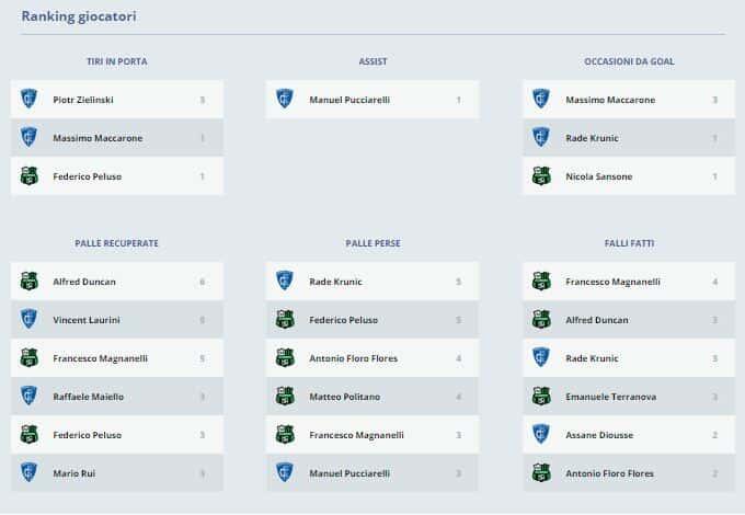 Home Empoli I numeri del match (Empoli/Sassuolo) I numeri del match (Empoli/Sassuolo) Di Alessio Cocchi - 5 Ottobre 2015 1 Ecco, con i dati rilevati da “Panini Digital” i numeri del match giocato ieri pomeriggio allo stadio “Castellani” tra Empoli e Sassuolo. Cliccando sul prospetto (è un pdf ridotto) si può ingrandire il quadro. ARTICOLI CORRELATIALTRO DALL'AUTORE Empoli Mercato Azzurro | Si guarda ad un centrocampista d’esperienza Empoli Duccio Degli Innocenti racconta la sua storia con l’Empoli Empoli L’arbitro di Empoli-Palermo 1 commento Poco da dire vittoria strameritata. Risposta LASCIA UN COMMENTO Cancella la risposta Please enter your comment! Please enter your name here You have entered an incorrect email address! Please enter your email address here Save my name, email, and website in this browser for the next time I comment. Δ Le ultime fotogallery Empoli Galleria Serie B 2025/26 | Empoli – Bari Massimiliano Ciabattini - 29 Novembre 2025 2 Galleria Serie B 2025/26 | Avellino – Empoli 23 Novembre 2025 Galleria Serie B 2025/26 | Empoli – Catanzaro 8 Novembre 2025 Galleria Serie B 2025/26 | Virtus Entella – Empoli 1 Novembre 2025 Galleria Serie B 2025/26 | Empoli – Sampdoria 28 Ottobre 2025