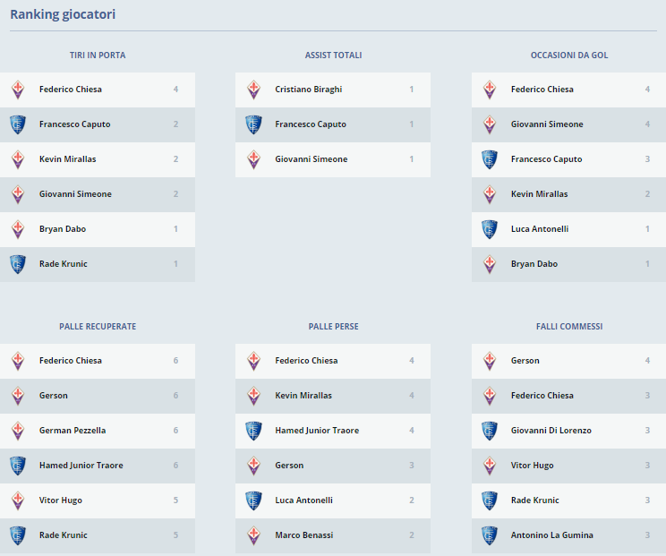 Home Empoli I numeri del match… Fiorentina/Empoli I numeri del match… Fiorentina/Empoli Di Redazione PianetaEmpoli - 17 Dicembre 2018 1 Questi i numeri statistici emersi dal confronto giocato ieri al Franchi tra Fiorentina ed Empoli. I dati sono raccolti direttamente dalla Lega di Serie A: ARTICOLI CORRELATIALTRO DALL'AUTORE Empoli Serie B 2025/26; Risultati e classifica dopo la 16a giornata Settore Giovanile WEEK END AZZURRO GIOVANI | Risultati gare 13-14 dicembre 2025 Empoli EFC | Martedi la ripresa. Da Castellammare uno schiaffo che deve farci tornare quelli di due settimane fa 1 commento Purtroppo i numeri dicono tutto…. Risposta LASCIA UN COMMENTO Cancella la risposta Please enter your comment! Please enter your name here You have entered an incorrect email address! Please enter your email address here Save my name, email, and website in this browser for the next time I comment. Δ Le ultime fotogallery Empoli Galleria Serie B 2025/26 | Empoli – Palermo Massimiliano Ciabattini - 7 Dicembre 2025 0 Galleria Serie B 2025/26 | Empoli – Bari 29 Novembre 2025 Galleria Serie B 2025/26 | Avellino – Empoli 23 Novembre 2025 Galleria Serie B 2025/26 | Empoli – Catanzaro 8 Novembre 2025 Galleria Serie B 2025/26 | Virtus Entella – Empoli 1 Novembre 2025