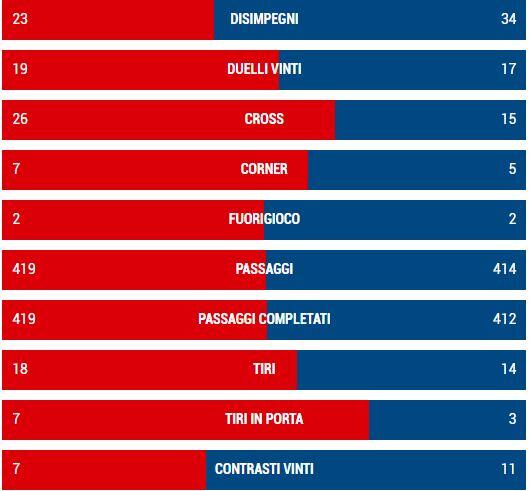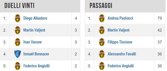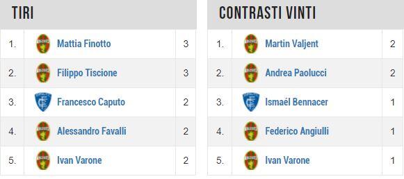 Contrasti vinti noi 11 e loro 7 però nella classifica ci sono 4 giocatori della Ternana e solo 1 nostro….anche le altre 3 classifiche mi sembrano farlocche…..forse l’ha fatte Nostradamus o Marione