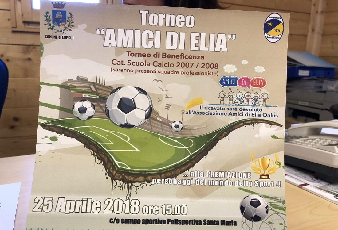 Si svolgerà mercoledi 25 Aprile, presso la Polisportiva Santa Maria, il torno benefico “Amici di Elia”. Dalle ore 15: le squadre 2007/08 di Empoli, Pistoiese, Gavorrano e Santa Maria daranno vita ad un quadrangolare organizzato dall’omonima associazione che da anni è attivamente impegnata nel sociale per dare un grande aiuto a tanti bambini affetti da patologie che rendono difficoltosa la deambulazione e la cognizione.