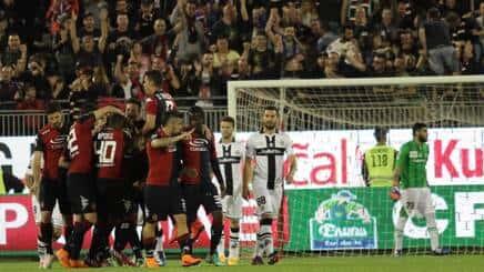 Il nuovo tecnico del Cagliari festeggia nel suo esordio in casa il 4-0 al Parma di Donadoni e mantiene viva una fiammella di speranza. La salvezza è lontana 6 punti (7, se si considera che l’Atalanta ha il vantaggio degli scontri diretti) e a quattro giornate dalla fine serve un’impresa. Ma se non altro, il suo Cagliari regala una serata di bel calcio al pubblico rossoblù. Inconsistente il Parma, per cui le vere partite si giocano ormai in sede d’asta e tribunale. Per la cronaca, i gol portano la firma di Ekdal al 3’, Farias al 15’, Mpoku al 38’ e Cop al 63’.