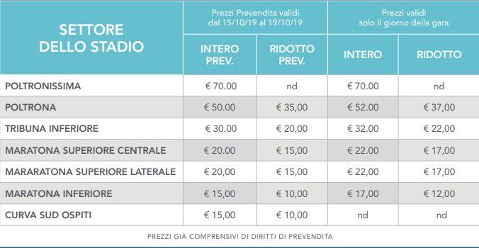 presso le biglietterie stadio il giorno gara. Nella fase di prevendita