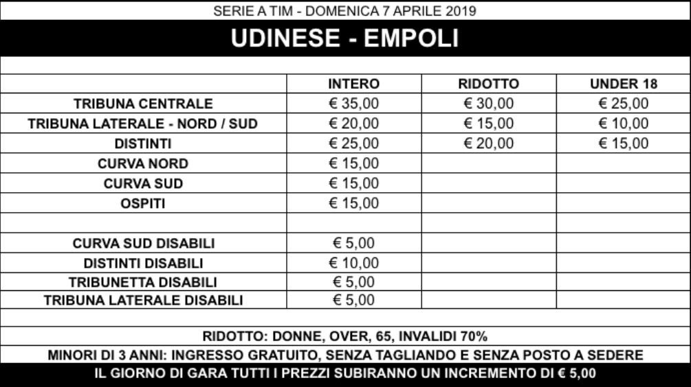 Prezzi giusti a udine in tutti i settori nonostante uno stadio moderno non come da noi dove serve 60 euro per la maratona superiore.