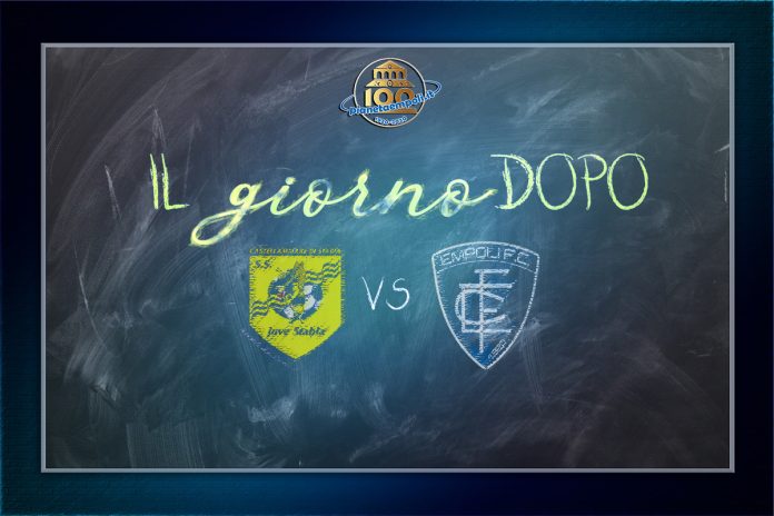 Mister Muzzi vara i 4-3-3 esordisce Fiamozzi sulla destra in una linea completata da Maietta, Romagnoli e Balkovec a protezione di Brignoli. A centrocampo viene rispolverato Stulac, affiancato da Ricci e Bandinelli, Tutino, affianca La Mantia e Mancuso nel tridente offensivo. L’avvio è incoraggiante, nei primi minuti gli azzurri mostrano un buon approccio anche se ben presto si capisce che si tratti solo di un “fuoco di paglia”. Clamoroso l’errore di Bandinelli al 4′, il suo alleggerimento favorisce Forte, il quale per nostra fortuna preferisce la potenza alla precisione colpendo una clamorosa traversa. E’ un allarme non colto dai nostri, passano solo 60” e la Juve Stabia sblocca la contesa sugli sviluppi di un corner, Forte è più lesto di tutti per trovare la deviazione vincente, con la retroguardia azzurra colpevolmente in ritardo. Prova a reagire l’Empoli, ma quando si scopre le “vespe” pungono in contropiede, tuttavia al 22′ potrebbe arrivare il pareggio: dal corner da destra stacco di Maietta in area respinto da Russo, si avventa Tutino, da posizione defilata la rimette in mezzo non trovando per un soffio Romagnoli sul secondo palo. Canotto vince sistematicamente i duelli con Canotto, un suo sinistro al 28′ si perde a lato. Nella ripresa la spinta azzurra aumenta, Muzzi ne prova tutte inserendo Frattesi e Ciciretti per gli spenti Mancuso e Stulac passando al 4-3-1-2 ma le cose non migliorano, infatti l’Empoli non va oltre ad un paio di conclusioni scoccate da La Mantia che non inquadrano la porta.
