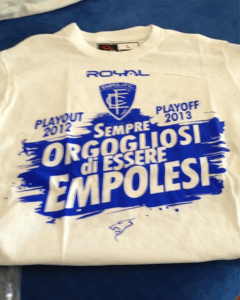 L’Empoli FC in collaborazione con Royal (sponsor tecnico) ha disegnato e realizzato una bella t-shirt che vuol celebrare la conquista del playoff 2012/13.