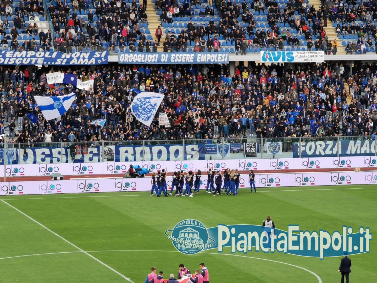 La squadra azzurra nel recupero non è praticamente mai pericolosa, ma riceve al termine dell’incontro ugualmente gli applausi di incoraggiamento della “Maratona” intera, e un “Orgogliosi di essere empolesi”, ormai marchio di fabbrica di tutti i tifosi biancazzurri, forse più per quanto fatto vedere a Torino che per la prova odierna, davvero opaca.