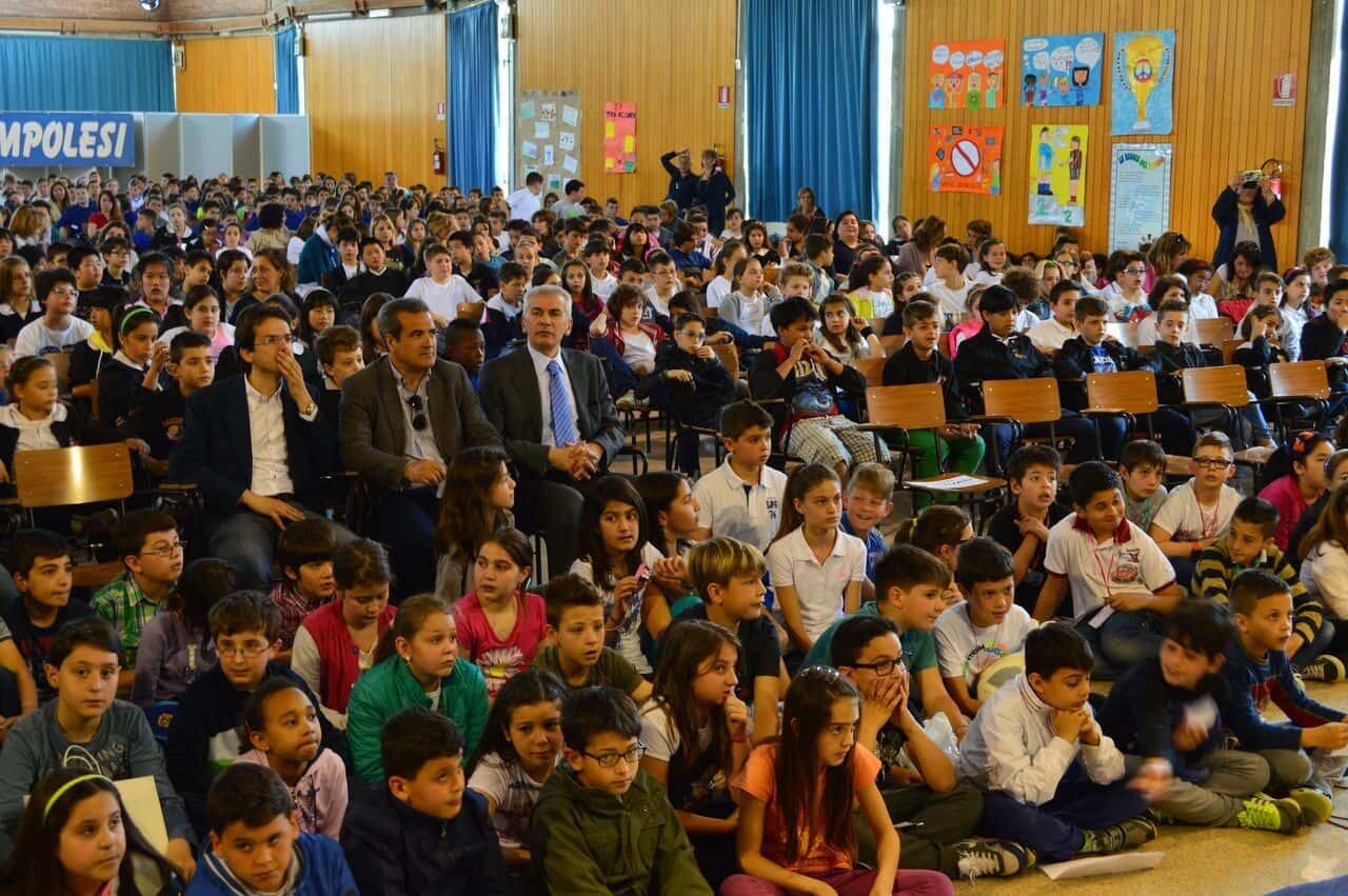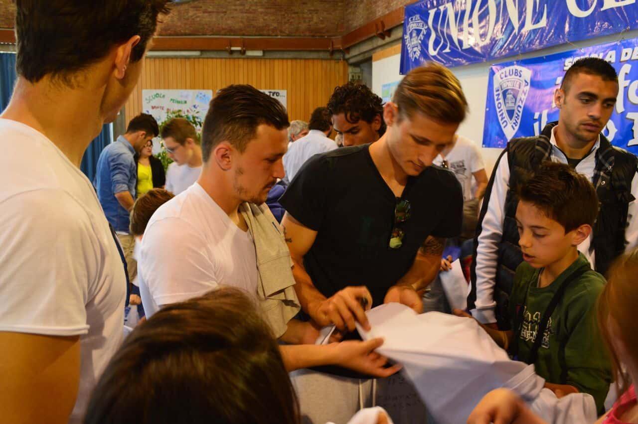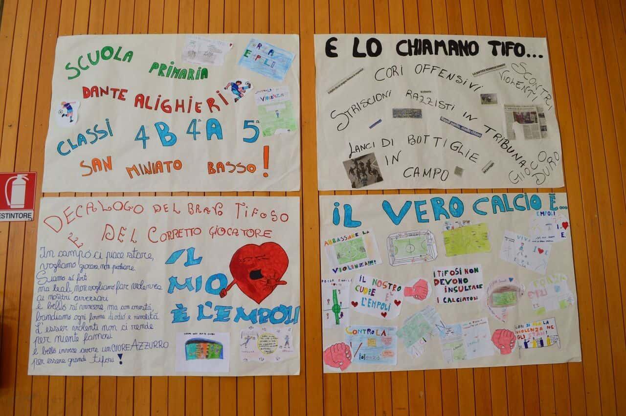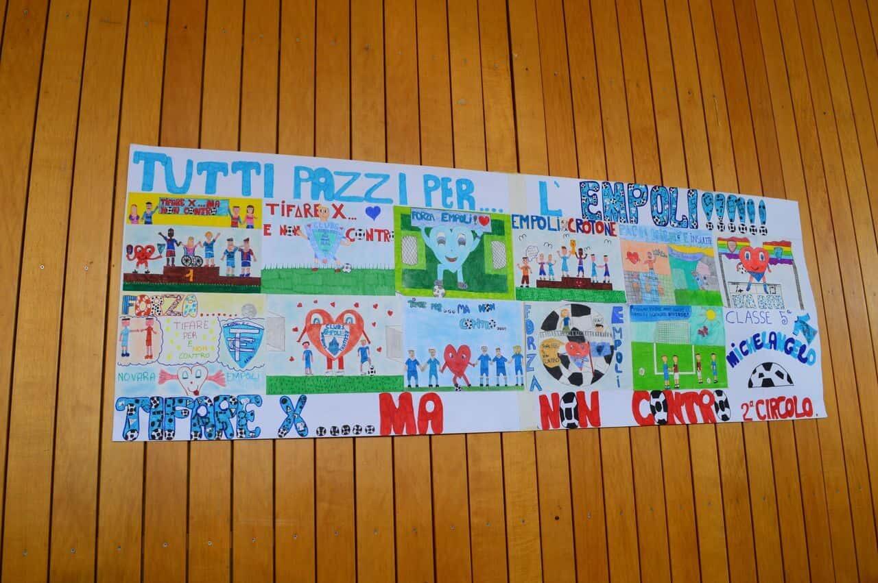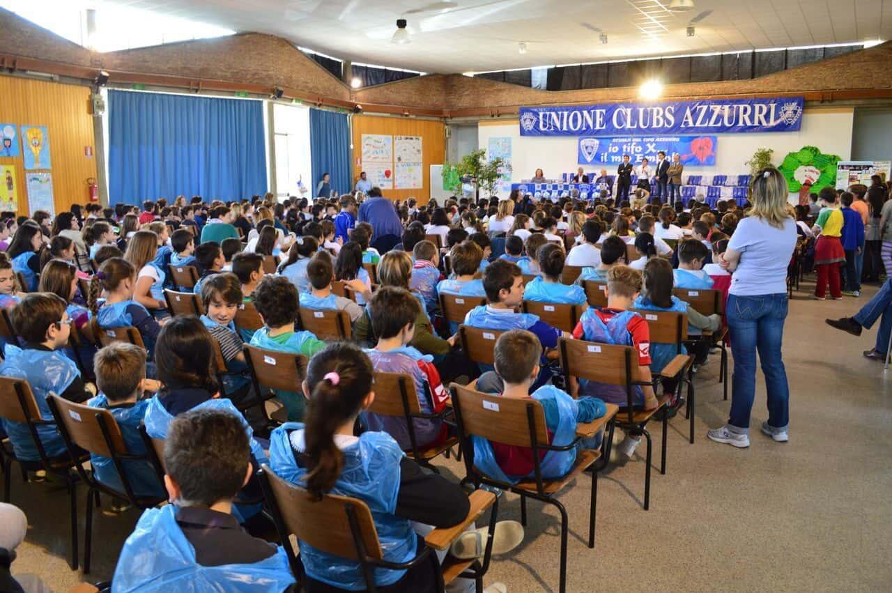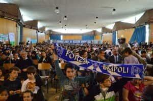 I bambini delle scuole del Circondario che hanno aderito al progetto “La Scuola del Tifo”, promosso dall’Unione Clubs Azzurri e giunto ormai alla settima edizione, si sono dati appuntamento questa mattina presso il Palazzo delle Esposizioni di Empoli. Più di 700 bambini delle elementari della zona, accompagnati dalle loro insegnanti, hanno atteso festanti l’arrivo dei calciatori azzurri, avvenuto intorno alle 11. Durante l’evento, sono stati presentati i lavori fatti da ciascuna classe sull’importanza di un “tifo pulito”, senza barriere nè discriminazioni, attraverso cartelloni e filastrocche.