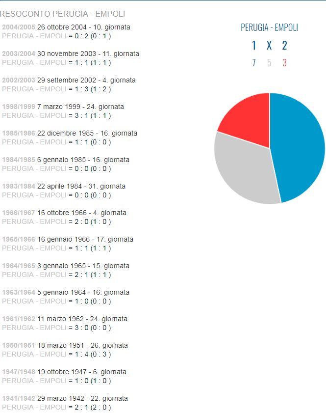 Vediamo la cronistoria degli incontri giocati a Perugia dai nostri nella grafica del portale di archivio empoli1920.com