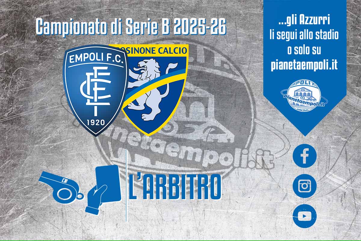 Il fischietto salentino ha diretto sette gare nell’attuale campionato di serie B, l’ultima è stata Palermo-Sampdoria 1-0. Una direzione stagionale anche nella massima categoria. E’ il secondo incrocio con gli azzurri in questo campionato, diretti già nel pareggio interno con il Venezia al debutto di Dionisi. In totale sono otto gli incroci tra l’Empoli e questo arbitro, il bilancio azzurro è due vittorie, cinque pareggi ed una sconfitta. Sono addirittura sedici i precedenti con i ciociari che hanno con questo fischietto in campo un bilancio di sette vittorie, tre pareggi e sei sconfitte. La squadra più diretta da Pezzuto è il Perugia con ventuno designazioni. Al VAR ci sarà Volpi di Arezzo.