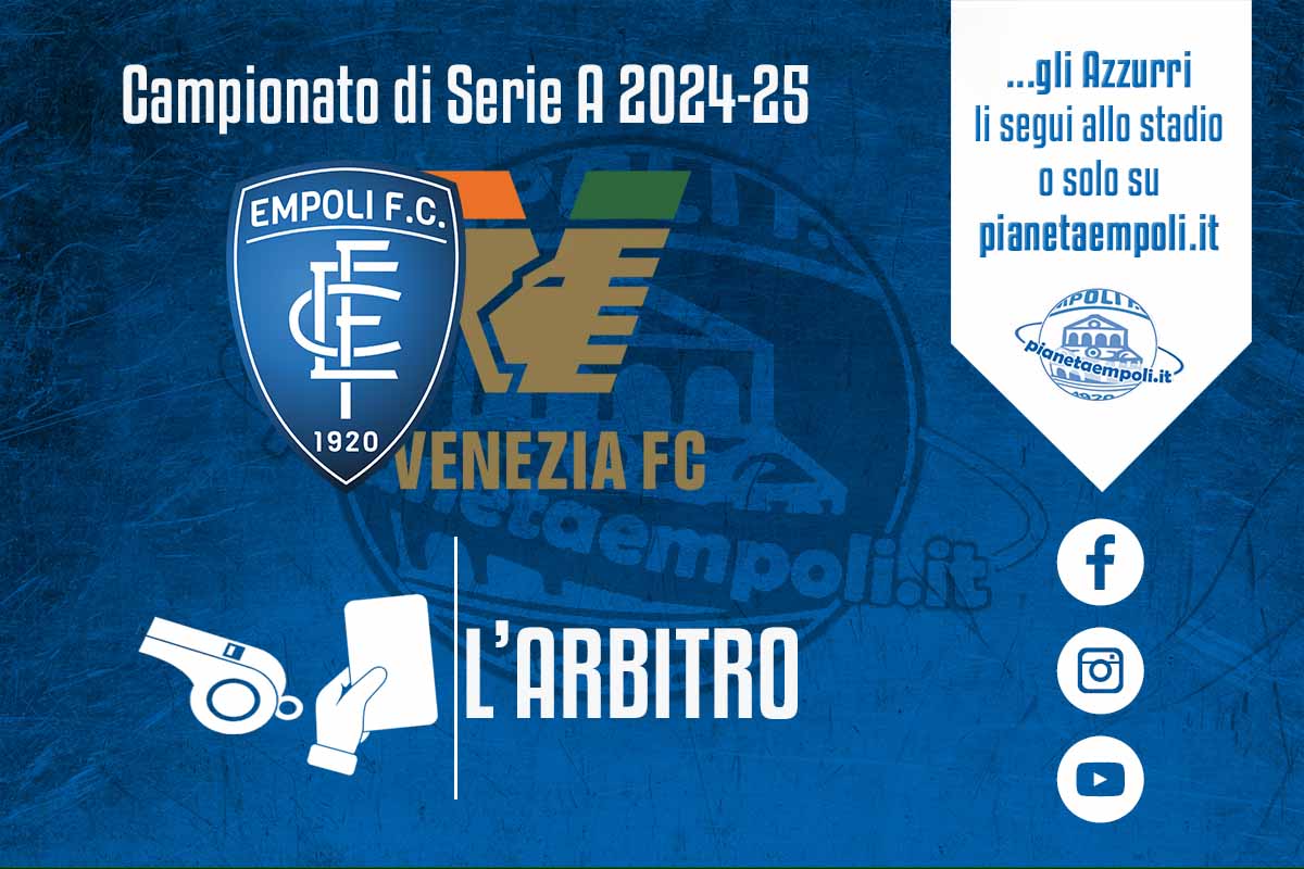 Sono quindici le gare dirette dal fischietto ligure nell’attuale campionato di serie A, soltanto in una di queste è stato incrociato l’Empoli, ovvero nel pareggio 1-1 di Marassi con il Genoa. In totale sono diciotto i precedenti tra Massa e gli azzurri, il bilancio per l’Empoli con questo arbitro è di 8 vittorie, 5 pareggi, 5 sconfitte. Soltanto due i precedenti con il Venezia (di cui uno in questa stagione) con un bilancio di una vittoria ed una sconfitta per i lagunari. La squadra più arbitrata da Massa è la Roma con 31 precedenti. L’ultima gara diretta è stata Bologna-Napoli 1-1. Al VAR ci sarà Mariani di Aprilia (LT).