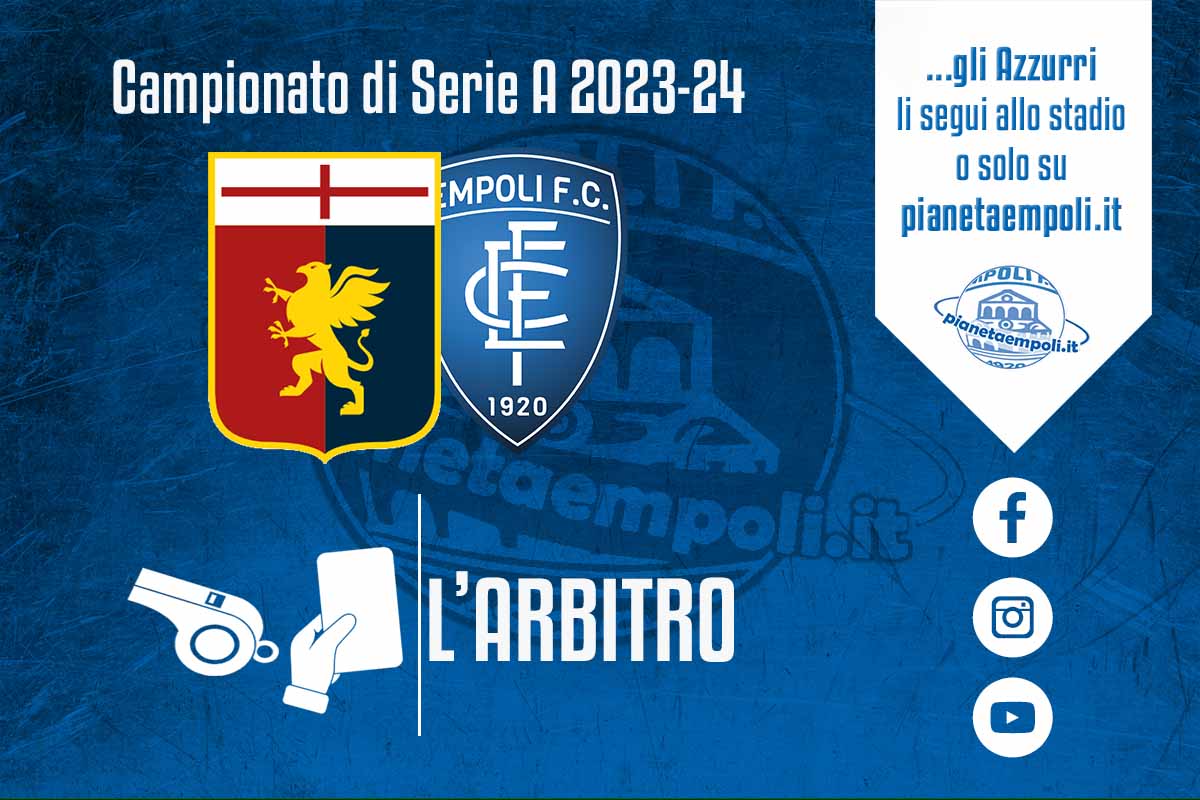 Quella di sabato sarà la quarta gara diretta nell’attuale serie A da parte del fischietto felsineo, che in stagione ha arbitrato anche in B ed in C. Aureliano ha già diretto l’Empoli in questa stagione, ovvero quella persa 2-0 a Monza. In totale sono dieci gli incroci tra gli azzurri e questo arbitro con un bilancio per l’Empoli di 4 vittorie, 3 pareggi e 3 sconfitte. Tre invece gli incroci con il Grifone ed in questi c’è perfetta parità. E’ il Brescia, con venti direzioni, la squadra più arbitrata da Aureliano. L’ultima gara diretta in serie A è stata Udinese-Atalanta 1-1. Al VAR ci sarà Meraviglia di Pistoia.