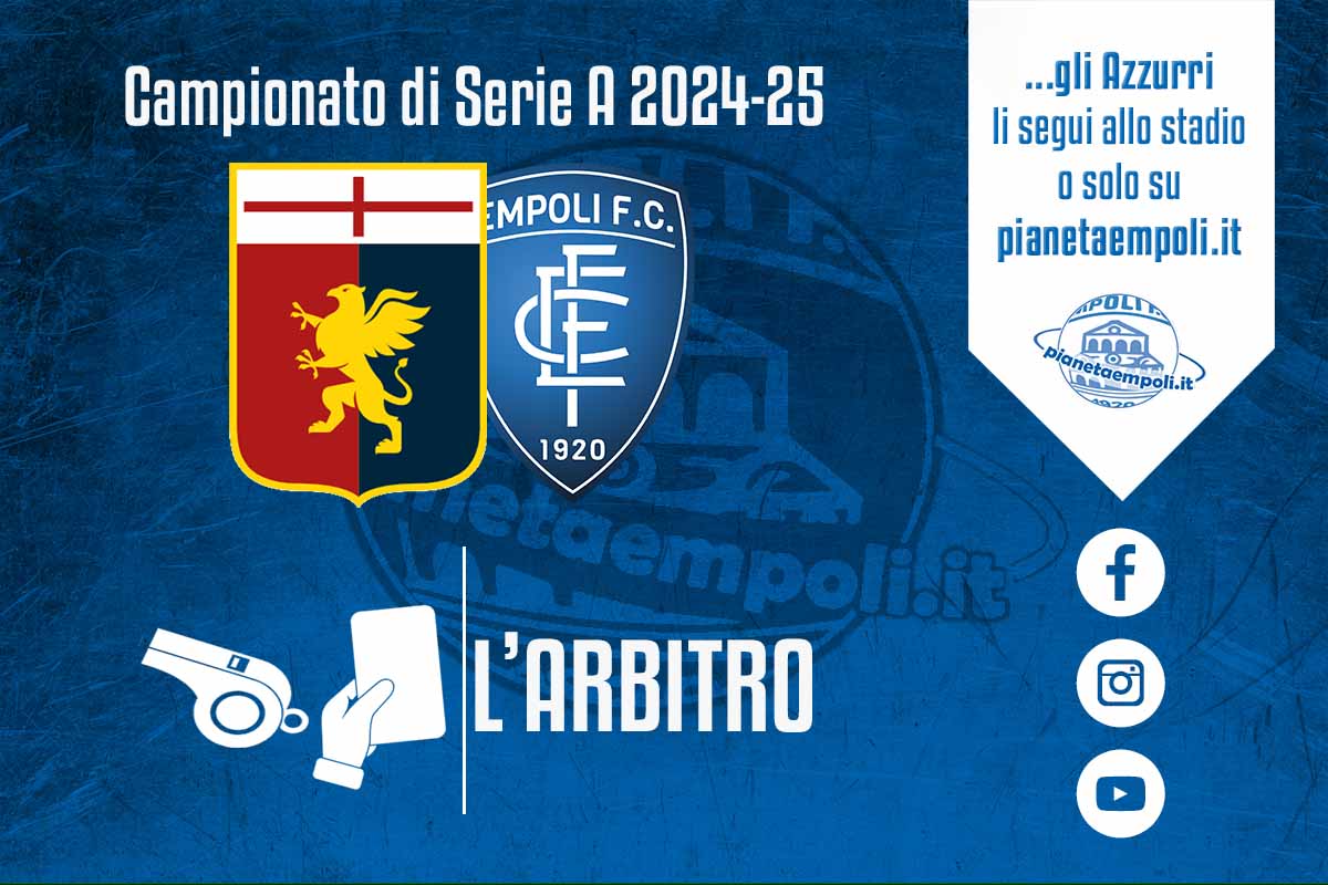 Sono undici le gare dirette fin qui, in questa stagione di serie A, dal fischietto ligure. Prima stagionale sia per i rossoblù che per gli azzurri. L’ultima direzione di Massa con l’Empoli risale alla notte della salvezza dello scorso campionato, il successo interno con la Roma. In totale sono diciassette gli incroci tra questo arbitro e la nostra squadra, il bilancio dell’Empoli è di 8 vittorie, 5 sconfitte e 4 pareggi. Quattordici i precedenti con il Grifone, in questo caso il bilancio genoano è di 4 vittorie, 4 sconfitte e 6 pareggi. La squadra più diretta da Massa è la Roma con 31 designazioni. L’ultima gara diretta è stata Lazio-Napoli 2-2. Al VAR ci sarà Sozza di Milano.
