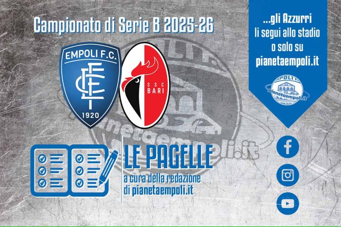 Ecco le pagelle inerenti le prestazioni dei calciatori azzurri usciti nettamente vittoriosi dalla gara odierna di questo pomeriggio del Castellani contro il Bari