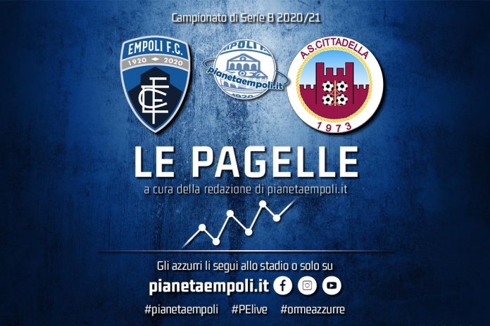 Queste le pagelle inerenti le prestazioni del calciatori azzurri che hanno pareggiato 1-1 al Castellani contro il Cittadella