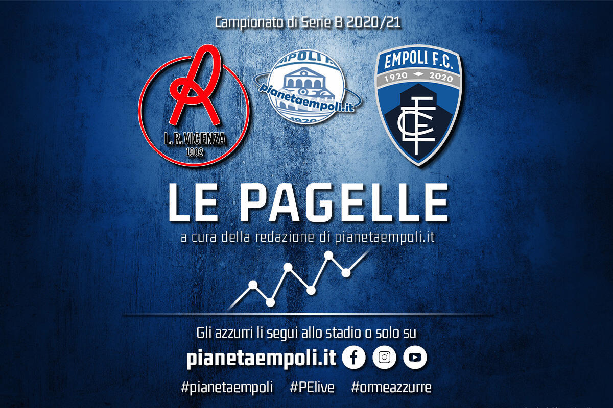 MISTER DIONISI: 6,5 Legge bene la gara nel primo tempo, subisce il ritorno dei vicentini nella ripresa, specie con il doppio cambio di modulo di Di Carlo che chiude addirittura con un 4.-2-4. Specie nel finale sembra non riuscire a dare alla squadra quella carica necessaria ad opporsi alla furia biancorossa. I cambi della sua panchina sembrano non premiarlo inizialmente ma alla fine ha ragione lui ed ora il suo Empoli si allontana, lassù in alto