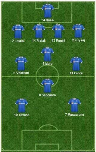 Di seguito le probabili formazioni schierate in campo: 3-5-2 per il Cesena, solito 4-3-1-2 per l’Empoli. Per ingrandire cliccare sopra all’immagine.