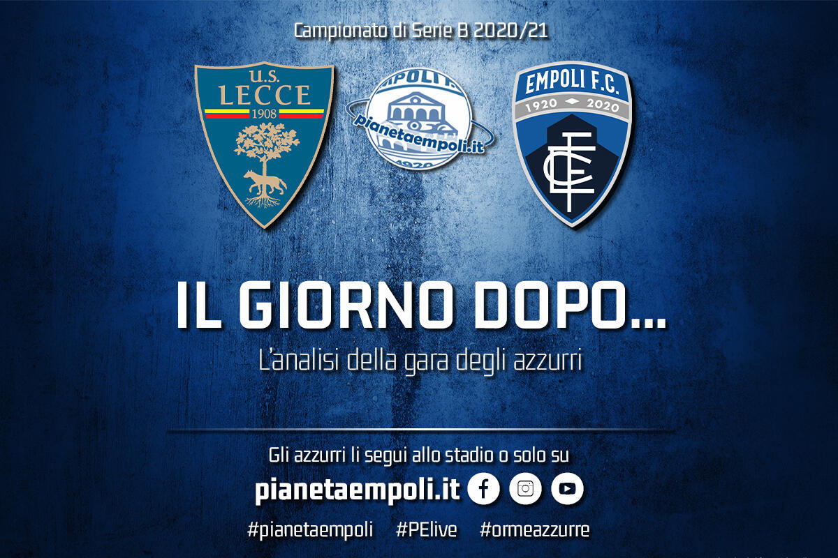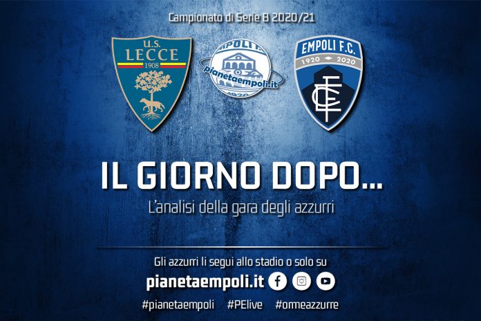 L’Empoli viene schierato con il consueto 4-3-1-2, nel quale Nikolaou e Casale vengono confermati in mezzo alla difesa, Fiamozzi e Parisi sugli esterni. In cabina di regia Stulac, affiancato da Haas e Ricci. Bajrami nel ruolo di guastafeste pronto ad innescare Mancuso e La Mantia. Gli azzurri prendono il comando delle operazioni, il Lecce a tratti appare inerme nelle propria metà campo, incapace quasi mai di ripartire o cambiare i colori di una partita che ha un solo colore: l’azzurro. Bajrami fa con giocate visionarie e mette paura agli avversari, prima del vantaggio firmato da Haas sugli sviluppi di un corner. La ripresa si apre con il raddoppio firmato da La Mantia, servito dal “solito” imprendibile Bajrami. La prima svolta negativa è l’uscita di scena di Parisi, che toglie qualcosa alla squadra di Dionisi. A quel punto comincia a crescere il Lecce: prima arriva il gol di Mancosu a tredici dalla fine, poi gli azzurrisubiscono il forcing del Lecce fino al pareggio di Rodriguez.