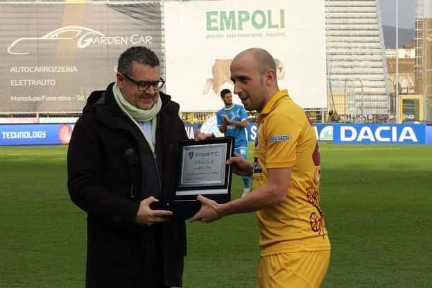 Infatti, prima dell’inizio della gara, l’AD azzurro Ghelfi, ha consegnato al “Cobra” una targa in onore e merito di quanto fatto dall’attaccante di Borgo San Lorenzo nei tanti, tantissimi anni azzurri.
