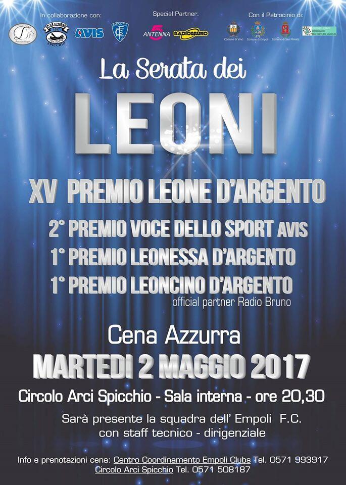 Martedì 2 maggio 2017 alla Sala da Ballo “Oreste Ristori” di Spicchio-Vinci si terrà la serata dei leoni dedicata al Leone d’Argento 2017, giunto alla quindicesima edizione.