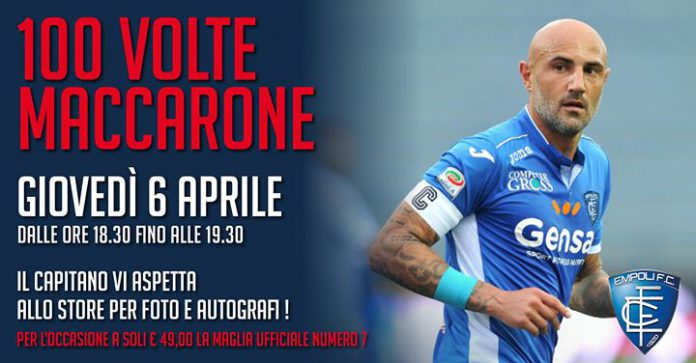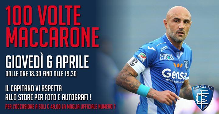100 volte Maccarone! Il capitano aspetta tutti domani sera all’Empoli Store a partire dalle 18.30 per foto, autografi e festeggiare al meglio i 100 gol con la maglia azzurra!