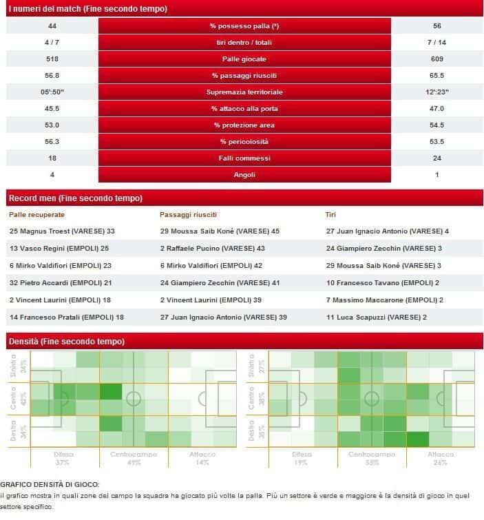 Empoli parte sinistra (squadra di casa), varese a destra (ospiti).