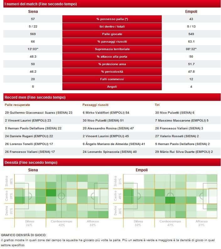 Intanto farei notare al nostro caro amico Senese,che abbiamo giocato in 10 per un tempo intero(fossero stati loro in 10 per un tempo intero si rideva e parecchio,visto e considerato la nostra supremazia nel primo tempo,sia come gioco che come occasioni)….mi fanno anche un po’ sorridere le 22 conclusioni totali del Siena,probabilmente potrebbero partecipare al programma di “Chi l’ha vist….e”……Non mi dimentico certo di dire all’amico Senese che dovrebbe anche guardare i falli commessi dalla squadra Empolese(12 CONTRO 20 E AMONISCONO SOLO I NOSTRI FALLI,CHE TRA L’ALTRO NON CI SONO NEMMENO,ALMENO NEL SECONDO FALLO DI ERAMO)E CHE NELLA PARTITA DI ANDATA HA GIOCATO SOLO UNA SQUADRA ED IL SIENA,CON TUTTI I SUOI GIANNETTI IN CAMPO,DEVE ACCENDERE UN CERO ALLA MADONNA PER AVER PORTATO A CASA UN PAREGGIO CHE DEFINIRE FORTUNATO MI SEMBRA DAVVERO POCO…..Per finire….nessuno dice che il Siena non sia una bella squadra,anzi,secondo me,potenzialmente è molto piu’ forte del Palermo e sicuramente la penalizzazione,l’ha anche svantaggiata sotto tanti punti di vista……..Pero’ bisogna essere anche obbiettivi e sportivi….11 cntro 11 al 90% questa partita l’avrebbe persa…..e comunque nel computo totale delle 2 partite giocate con voi……almeno 4 punti ci spettavano senza troppi discorsi…..concludo dicendo che squadre che vengono a Siena a giocarsela come abbiamo fatto noi,ne,ne avete viste,ne,ne vedrete da qui a fine campionato,quindi sfotto’ a parte che sono il sale dei commenti fra tifosi,LA SQUADRA AZZURRA DOVETE SOLO AMMIRARLA!