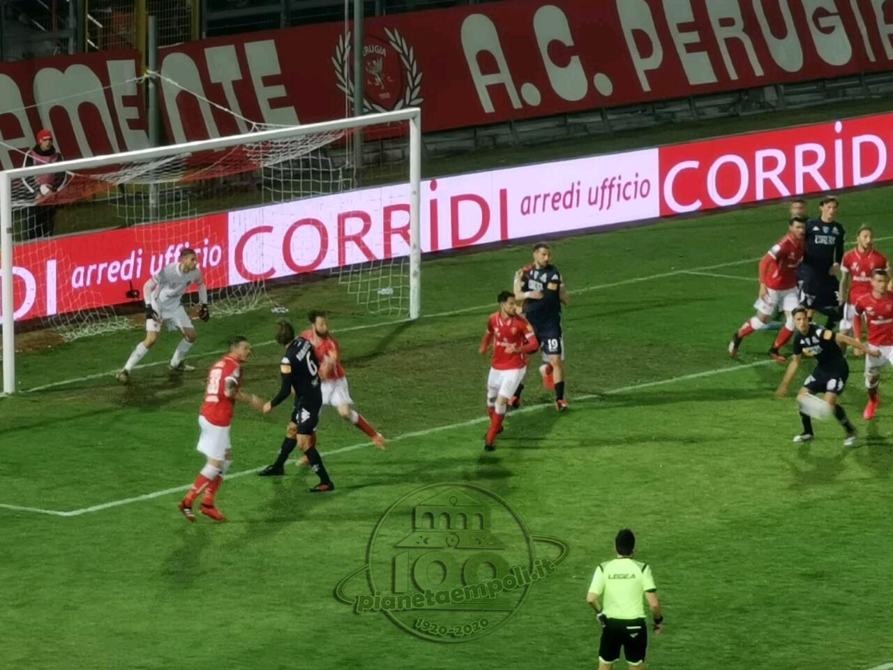 90′- Reagisce il Perugia, cross di Rosi a cercare la deviazione di Kouan con palla sopra la traversa.