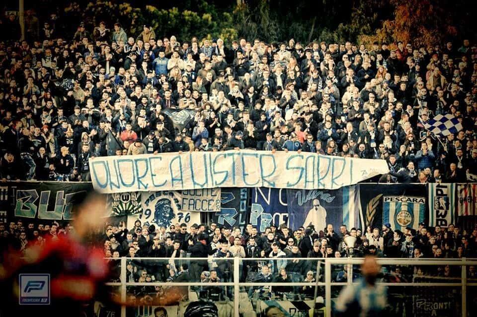 Stiamo parlando dello striscione che i tifosi della Nord perscarese, il cuore pulsante del tifo biancazzurro, hanno dedicato a mister Sarri che in riva all’Adriatico ha lasciato grandi ricordi.