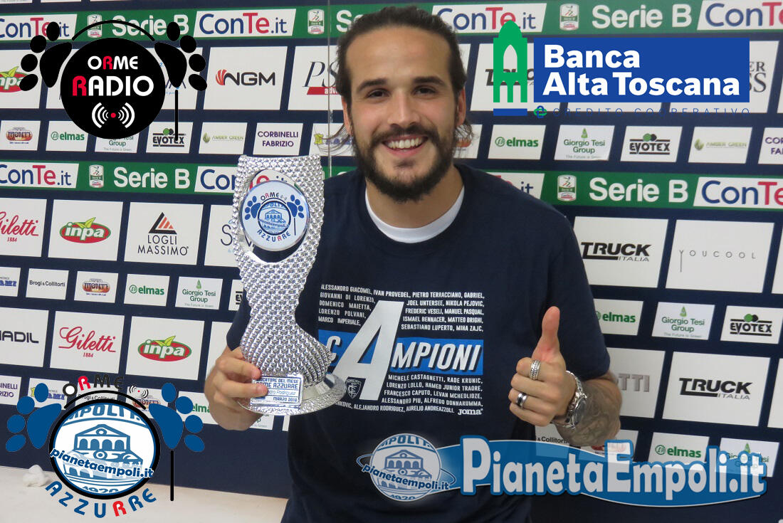 Alejandro Rodriguez si è aggiudicato il primo riconoscimento “Giocatore del Mese – ORME AZZURRE/Banca Alta Toscana“, inerente al mese di Marzo. Il numero maggiore di voti ricevuti dall’attaccante spagnolo attraverso le pagine Facebook di Pianetaempoli.it e di Orme Radio lo hanno visto davanti ai compagni ed ieri è avvenuta la consegna del Premio.