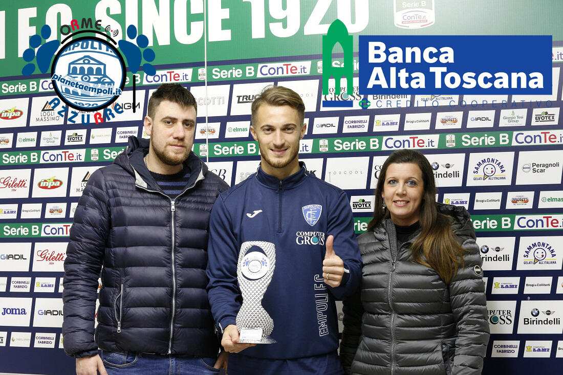 Alfredo Donnarumma si è aggiudicato il primo riconoscimento “Giocatore del Mese – ORME AZZURRE“, inerente al mese di Dicembre. Il numero maggiore di voti ricevuti dall’attaccante campano attraverso le pagine Facebook di Pianetaempoli.it e di Orme Radio lo hanno visto davanti ai compagni ed oggi è avvenuta la consegna del Premio.