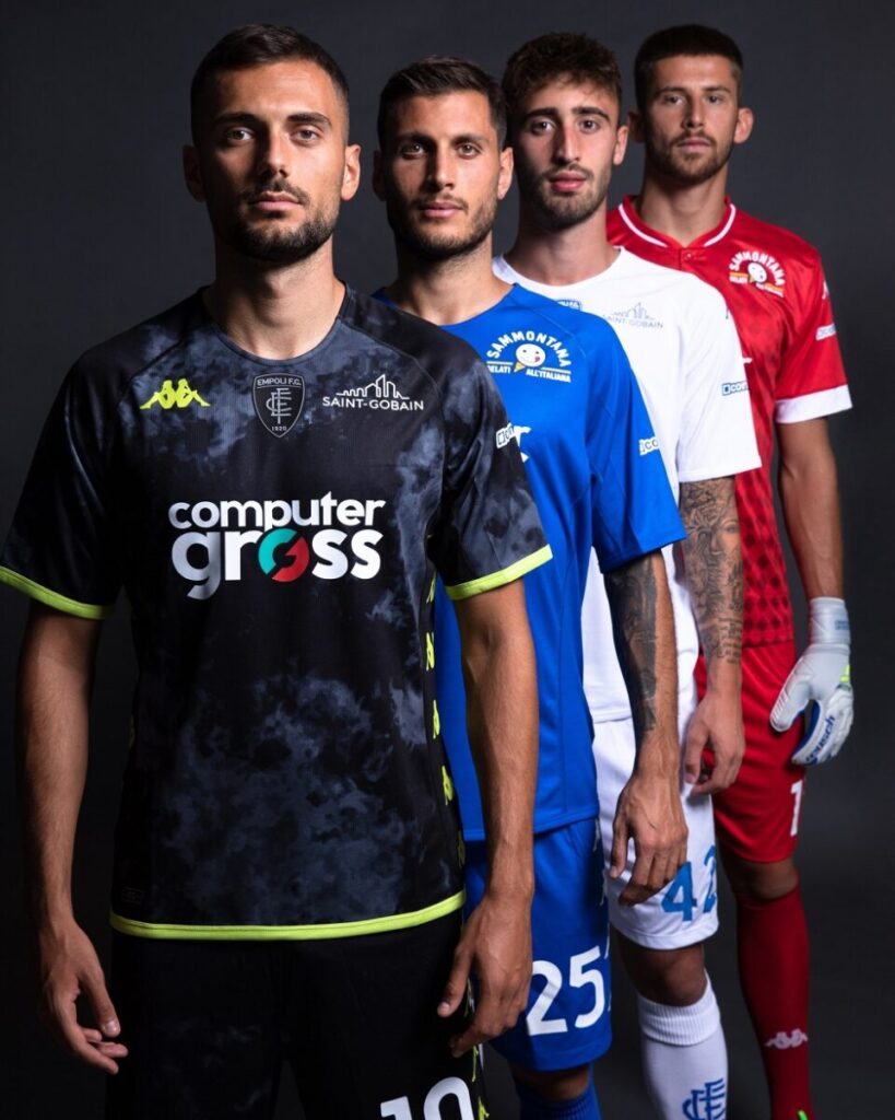 Sono state appena diramate le immagini dei nuovi kit per la stagione che prenderà il via la settimana prossima. Le tre nuove maglie dell’Empoli sono cosi state presentate al pubblico e da questo momento ci accompagneranno per tutta la prossima stagione sportiva. Azzurra, bianca ed ancora nera la terza.