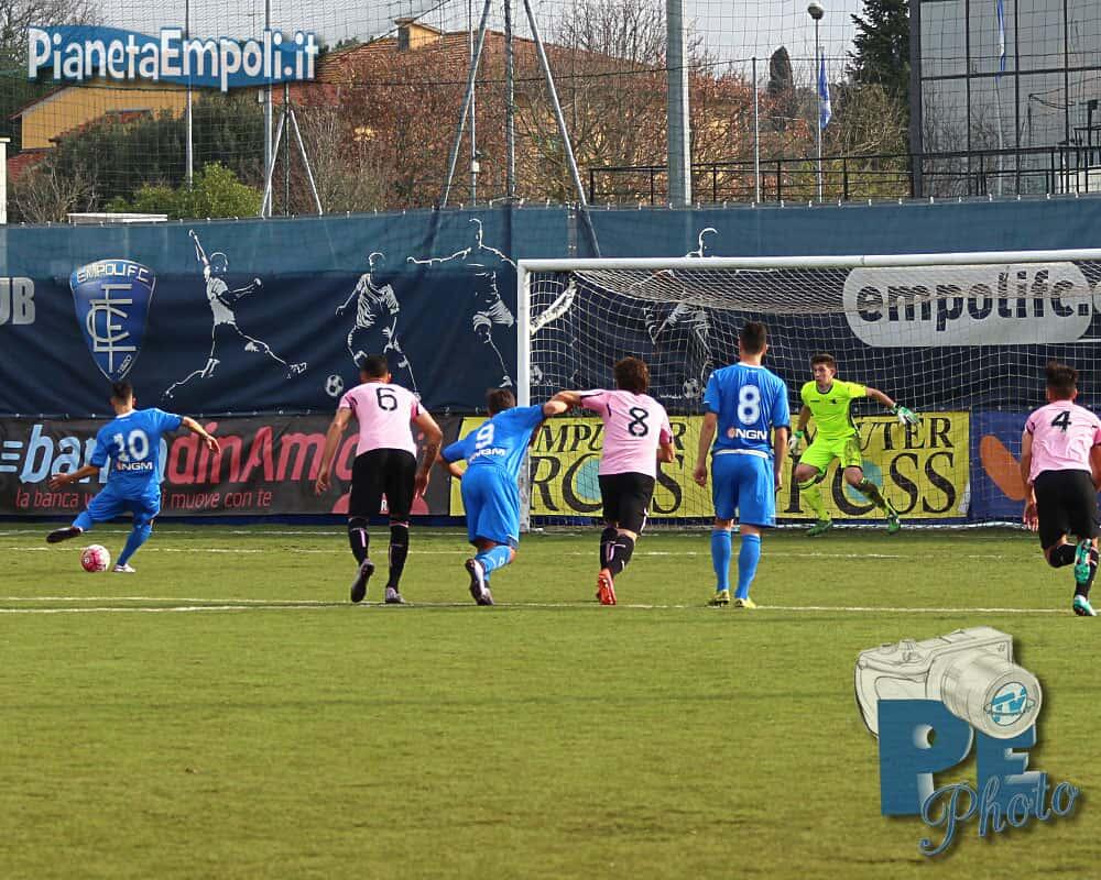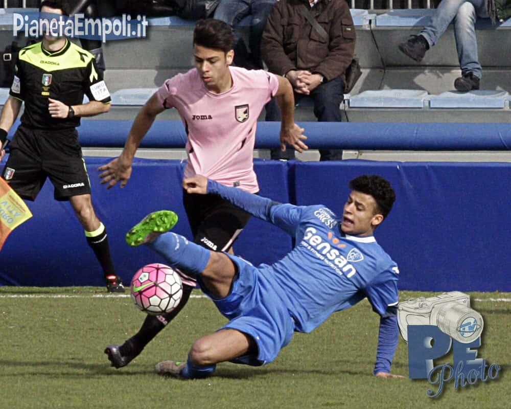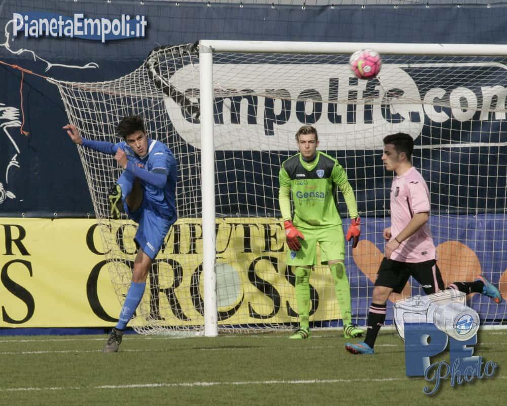 Il Palermo risponde all’azione dell’Empoli con palla che va a Bonfiglio che, a pochi metri dalla porta, resiste alla pressione di Bruni e supera Giacomel in uscita