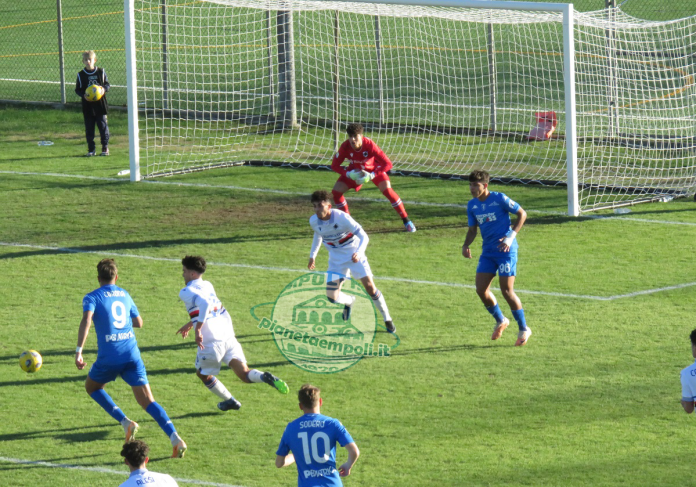 36′: ancora un’occasione per l’Empoli, lancio smarcante dalla linea difensiva di Vallarelli per El Biache che si presenta solo davanti a Scardigno ma manca il secondo controllo al momento del tiro ed il portiere della Samp para