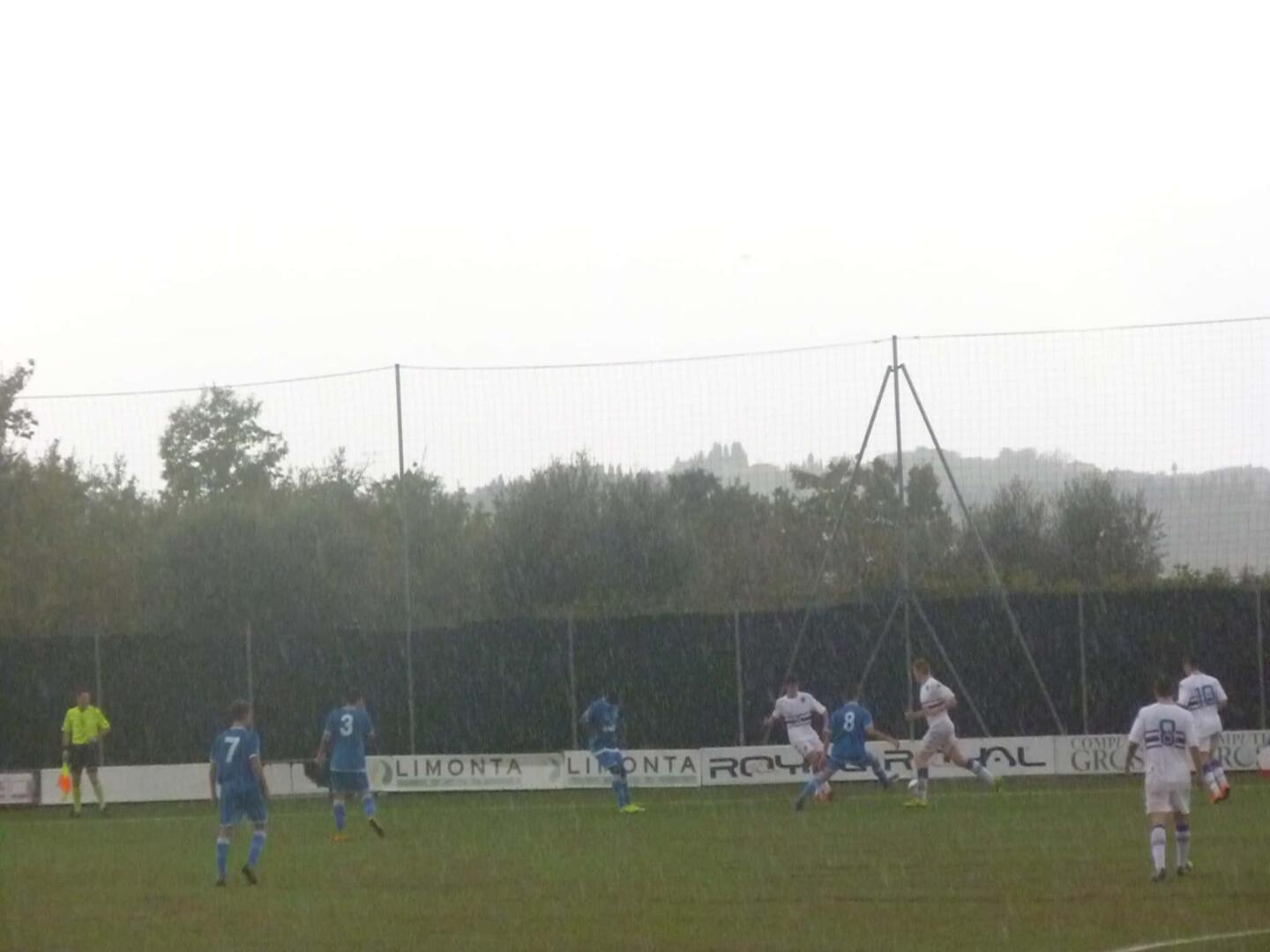 43′ Chiude Bruni sul minaccioso Baldi, mettendo in aut. Intanto sta iniziando di nuovo a piovere.
