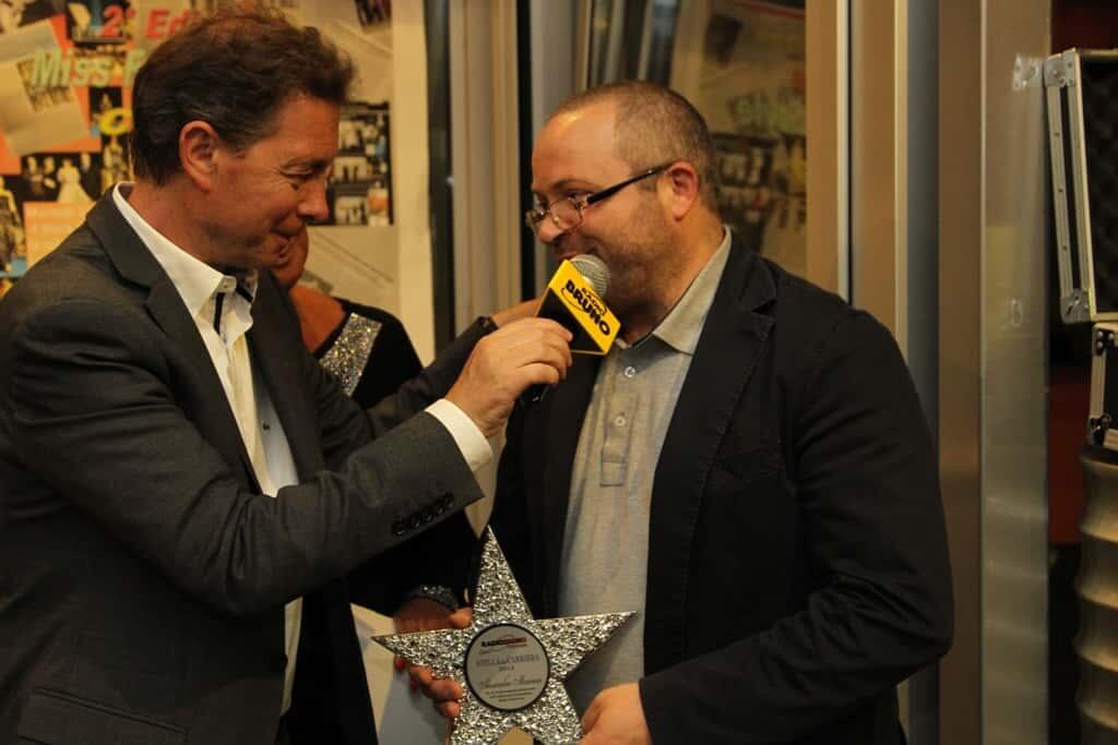 Lunedi scorso 22 giugno, al Black Line di Bientina (Pisa), si è svolta la rituale serata di chiusura della stagione sportiva 2014/15 di Radio Bruno Toscana, con tutta la redazione sportiva dell’emittente tosco-emiliana al gran completo. Sono stati consegnati gli Ufo Plast-Ufo in campo, premi consegnati ai migliori calciatori dei vari campionati seguiti dalla radio (dalla massima divisione fino ai tornei di Seconda Categoria, ndr) ed anche le Stelle alla Carriera, premio rivolto ai giornalisti sportivi. Quest’anno la “Stella alla carriera” è andato anche al nostro Alessandro Marinai, storica voce di Radio Quattro, con cui oltre venti anni fa Alessandro ha mosso i primi passi nel mondo del giornalismo, ed attuale opinionista per PianetaEmpoli nonché voce e volto calcistico di Antenna5.