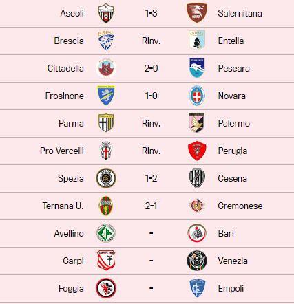 Tra i risultati odierni spiccano le vittorie di Cittadella e Frosinone, con i ciociari a riprendersi momentaneamente la testa della classifica. Brutto stop interno per l’Ascoli che si vede sprofondare sempre più.
