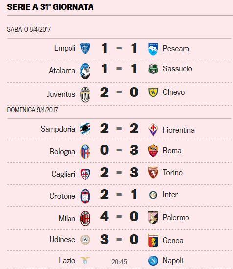 Manca all’appello il posticipo di questa sera tra Lazio e Napoli ma di fatto il trentunesimo turno di serie A si è chiuso.