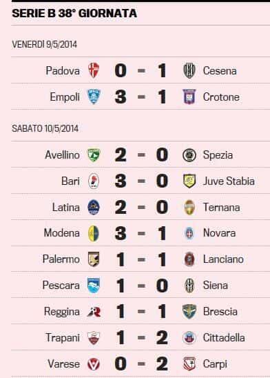Dopo i due anticipi di ieri, con anche gli azzurri in campo, si sono giocate oggi tutte le altre gare della 38a giornata del campionato cadetto. Occhi puntati sul match di Latina dove i pontini, purtroppo, hanno tenuto il passo (ancora a -4) vincendo contro la Ternana decimata dalle espulsioni. In coda è adesso il Varese a rischiare moltissimo.