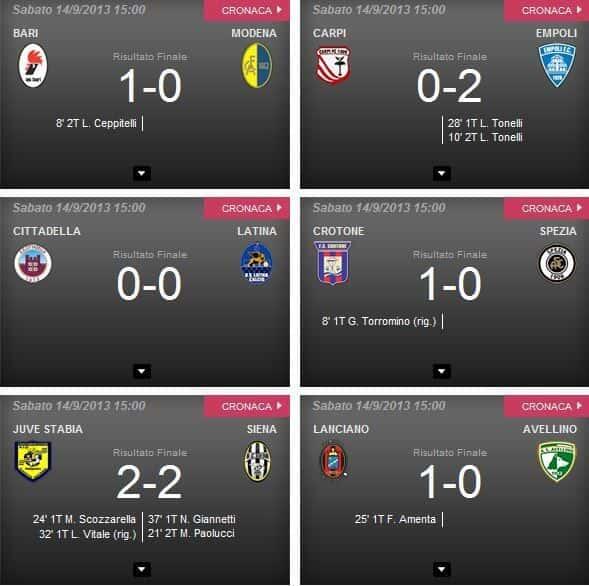 Home Empoli Risultati finali 4a giornata serie B Risultati finali 4a giornata serie B Di Alessio Cocchi - 14 Settembre 2013 0 Questi i risultati finali al termine del quarto turno del campionato cadetto: ARTICOLI CORRELATIALTRO DALL'AUTORE Empoli Empoli-Palermo: statistiche a confronto Empoli Mercato Azzurro | Si guarda ad un centrocampista d’esperienza Empoli Duccio Degli Innocenti racconta la sua storia con l’Empoli LASCIA UN COMMENTO Cancella la risposta Please enter your comment! Please enter your name here You have entered an incorrect email address! Please enter your email address here Save my name, email, and website in this browser for the next time I comment. Δ Le ultime fotogallery Empoli Galleria Serie B 2025/26 | Empoli – Bari Massimiliano Ciabattini - 29 Novembre 2025 2 Galleria Serie B 2025/26 | Avellino – Empoli 23 Novembre 2025 Galleria Serie B 2025/26 | Empoli – Catanzaro 8 Novembre 2025 Galleria Serie B 2025/26 | Virtus Entella – Empoli 1 Novembre 2025 Galleria Serie B 2025/26 | Empoli – Sampdoria 28 Ottobre 2025