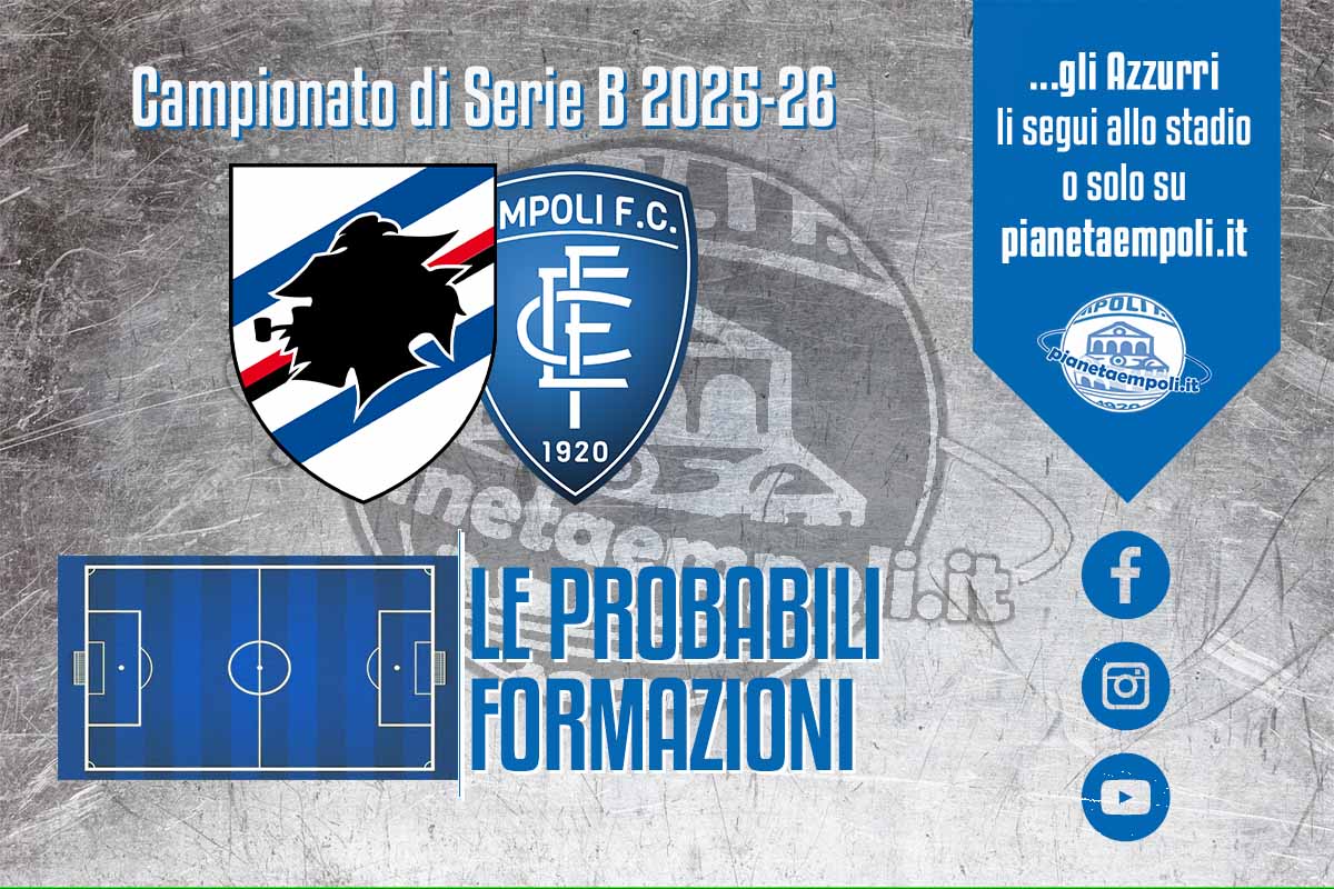 La Samp di Lombardo dovrebbe adottare un 4-2-3-1 nella gara di domani. In avanti dovrebbe agire Coda anche in virtù della squalifica di Brunori. Da capire le condizioni dell’ex Henderson che ha avuto un problema ma potrebbe essere tra i convocati. Dalla squalifica rientra Esposito che dovrebbe andare a mettersi nei due davanti alla difesa. In difesa ballottaggio Cicconi-Giordano per il terzino sinistro. Sempre guardando alla difesa sarà titolare l’altro ex, Viti. Non ci sarà Pafundi ed al suo posto andrà Cherubini. Out Venuti e Hadžikadunić.