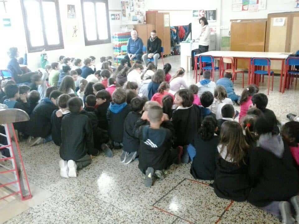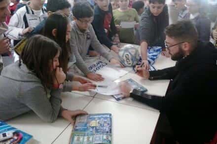 Mattinata di quelle da portare nell’album dei ricordi per i piccoli bimbi della scuola di Santa Maria che, quest’oggi, nel contesto della “Scuola del Tifo ” (inutile ripeterci spiegando questa magnifica iniziativa del Centro di Coordinamento), hanno avuto la possibilità di incontrare uno straripante Lorenzo Tonelli.