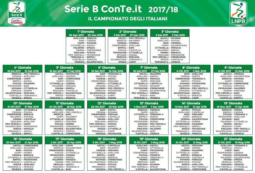 Si è concluso da pochi minuti l’evento che ha determinato il calendario per la stagione sportiva 2017/18 di Serie B, tutte le giornate sono state formate ed il cammino degli azzurri è stato segnato. Si partirà il 26 agosto, in trasferta contro la Ternana mentre il debutto allo stadio “Castellani” sarà la settimana seguente quando di fronte ci troveremo il Bari di Fabio Grosso.