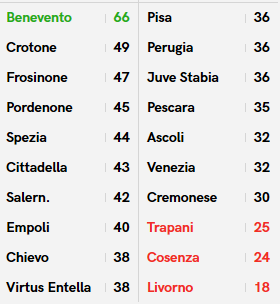 In attesa dei posticipi Benevento-Pescara e Chievo-Cosenza, questi i risultati e la classifica provvisoria ( ricordiamo che in settimana è prevista una riunione straordinaria per valutare la sospensione definitiva dei campionati)