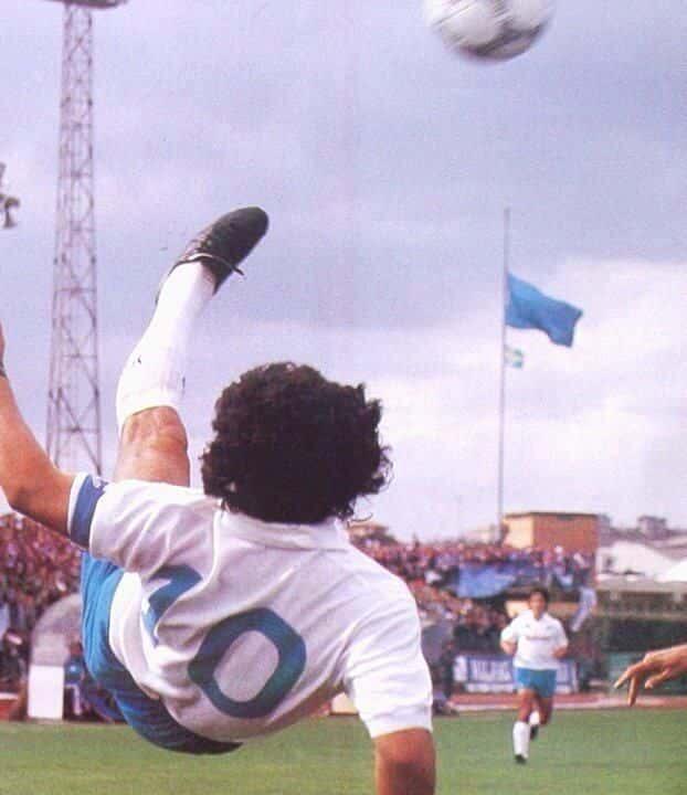 Nella foto a lato Diego Armando Maradona si esibisce in una rovesciata al Carlo Castellani di Empoli nella sfida tra Empoli e Napoli terminata 0-0 (Serie A – 1986/87).