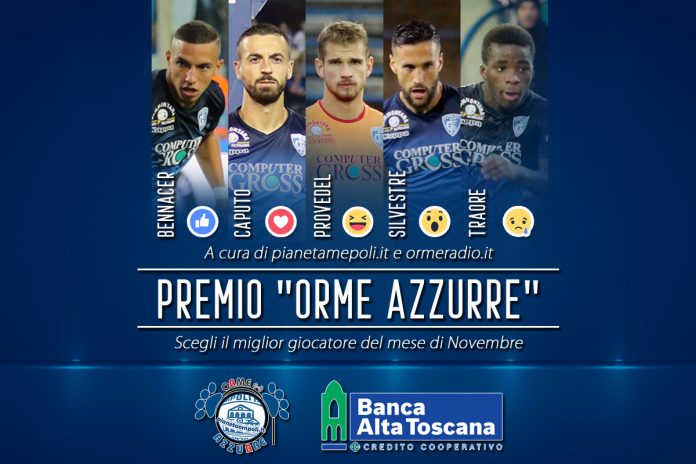 Sono terminate le gare ufficiali del mese di Novembre e da oggi è possibile votare il “Giocatore del Mese – Orme Azzurre“. Si vota unicamente attraverso le pagine Facebook di Pianetaempoli (occorre avere il Like alla pagina) e di Orme Radio.