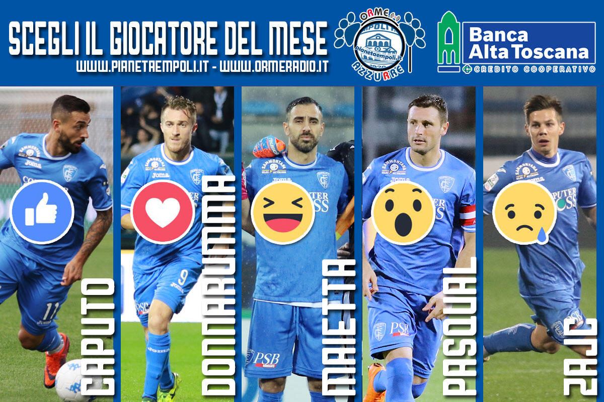 I calciatori in nomination per il mese di Maggio sono in ordine alfabetico: Caputo, Donnarumma, Maietta, Pasqual, Zajc. I cinque finalisti, come da regolamento, sono coloro che hanno avuto il numero maggiore di voti sommando le pagelle di ogni singola partita del mese delle testate giornalistiche: Pianetaempoli.it, Il Tirreno, La Nazione, La Gazzetta dello Sport.